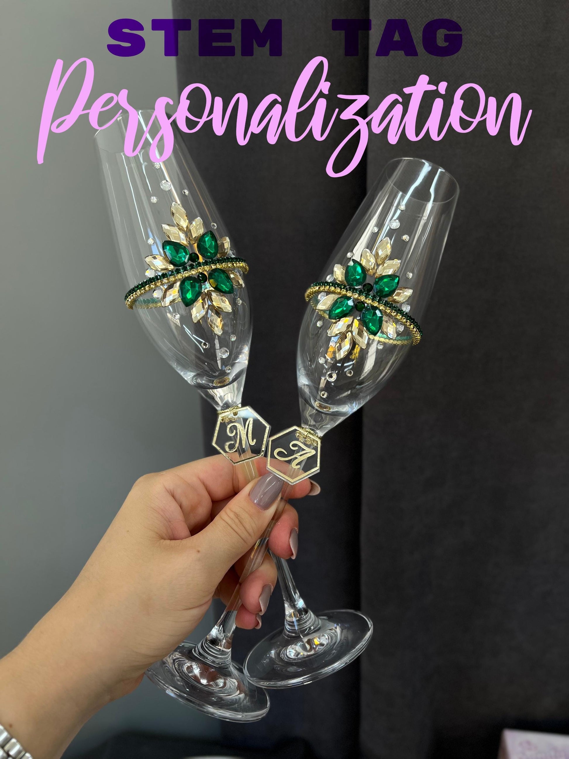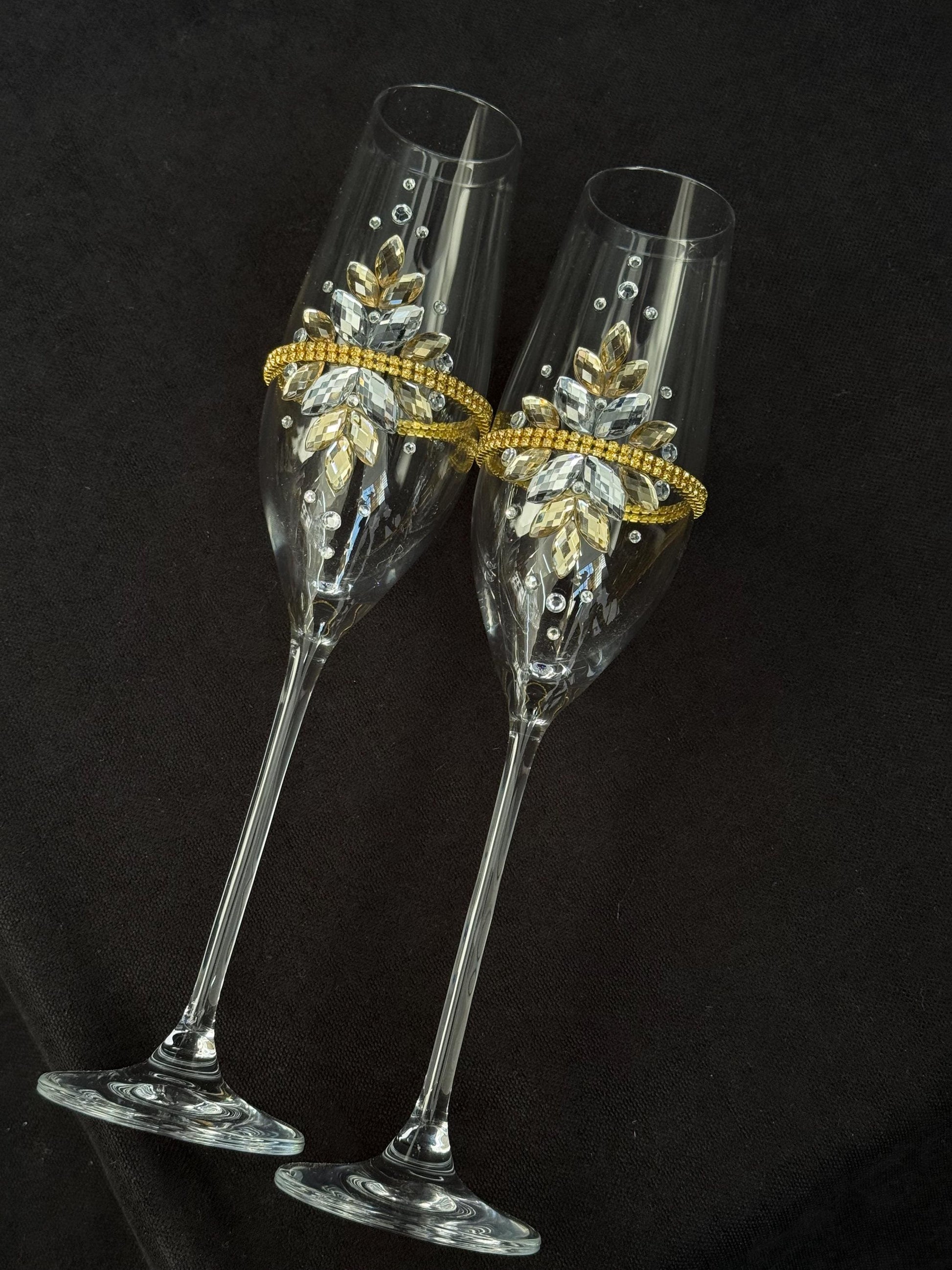 ✔ 2 champagne flutes / wedding glasses with acrylic crystals